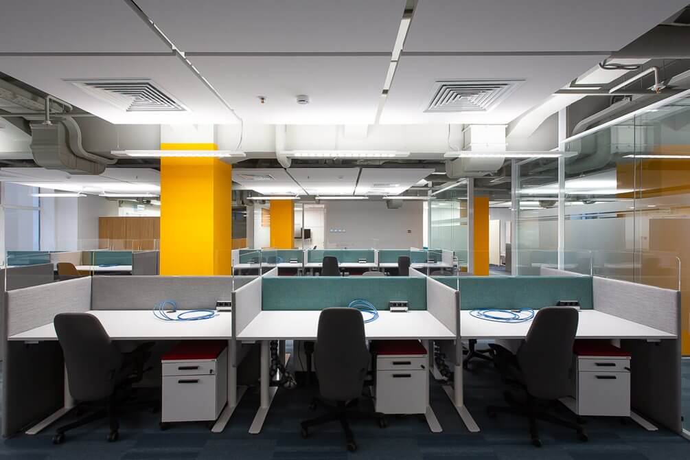 Перед исполнителями проекта стояла задача создать современное офисное пространство с большим количеством рабочих мест для комфортной работы сотрудников. Кроме того, было необходимо спроектировать стильные lounge-зоны и переговорные комнаты, где можно пообщаться с коллегами и обсудить рабочие моменты в группах.