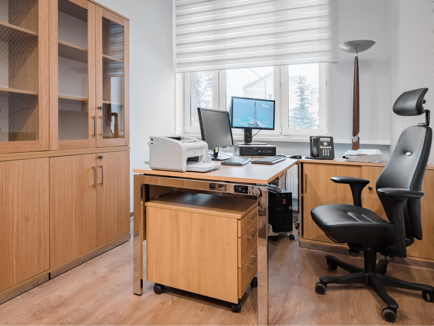 Рабочие места в офисе Нефтегазовой компании расположены в отдельных кабинетах, это помогает лучше сконцентрироваться на работе.