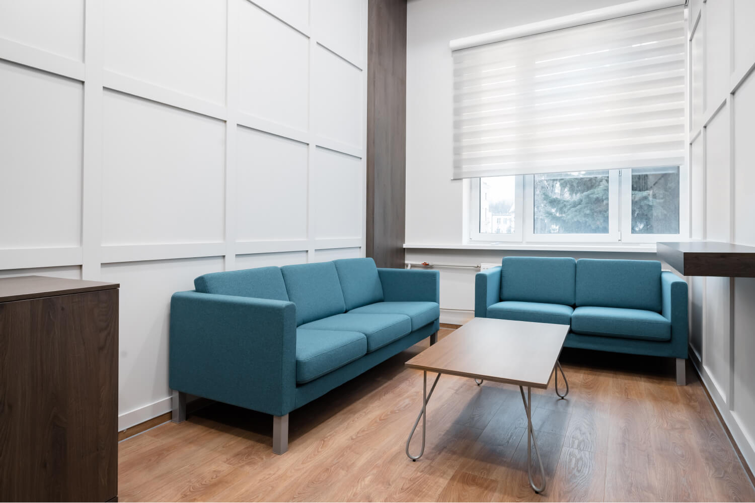 Яркими акцентами стали стулья Kinnarps Leia в обивке голубого цвета.