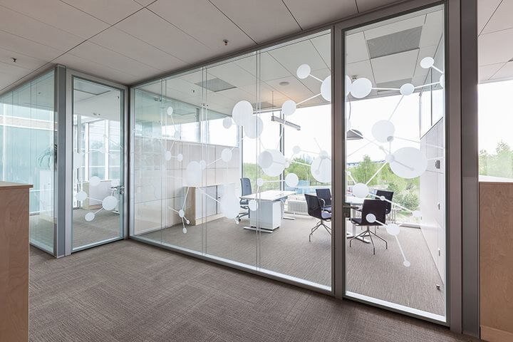 Для руководителей в open-space выделены персональные типовые кабинеты с прозрачными акустическими перегородками. Такой же типовой кабинет занимает топ-менеджер компании. Все рабочие места в офисе находятся по фронту остекления и закреплены за сотрудниками за исключением нескольких резервных столов.